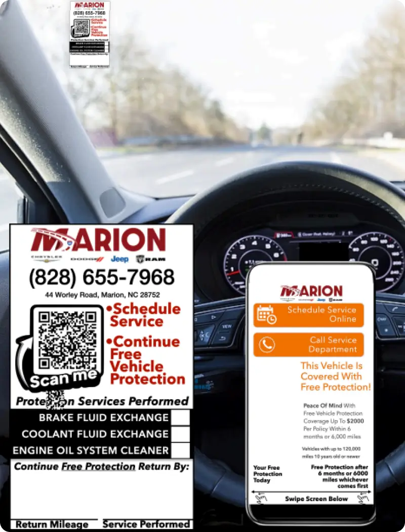 Removable POV Protection Stickers. Reminds Customers Every Day They Have Free Protection On Their Vehicle Now But Must Return To Dealer For Service To Continue Protection On Covered Components