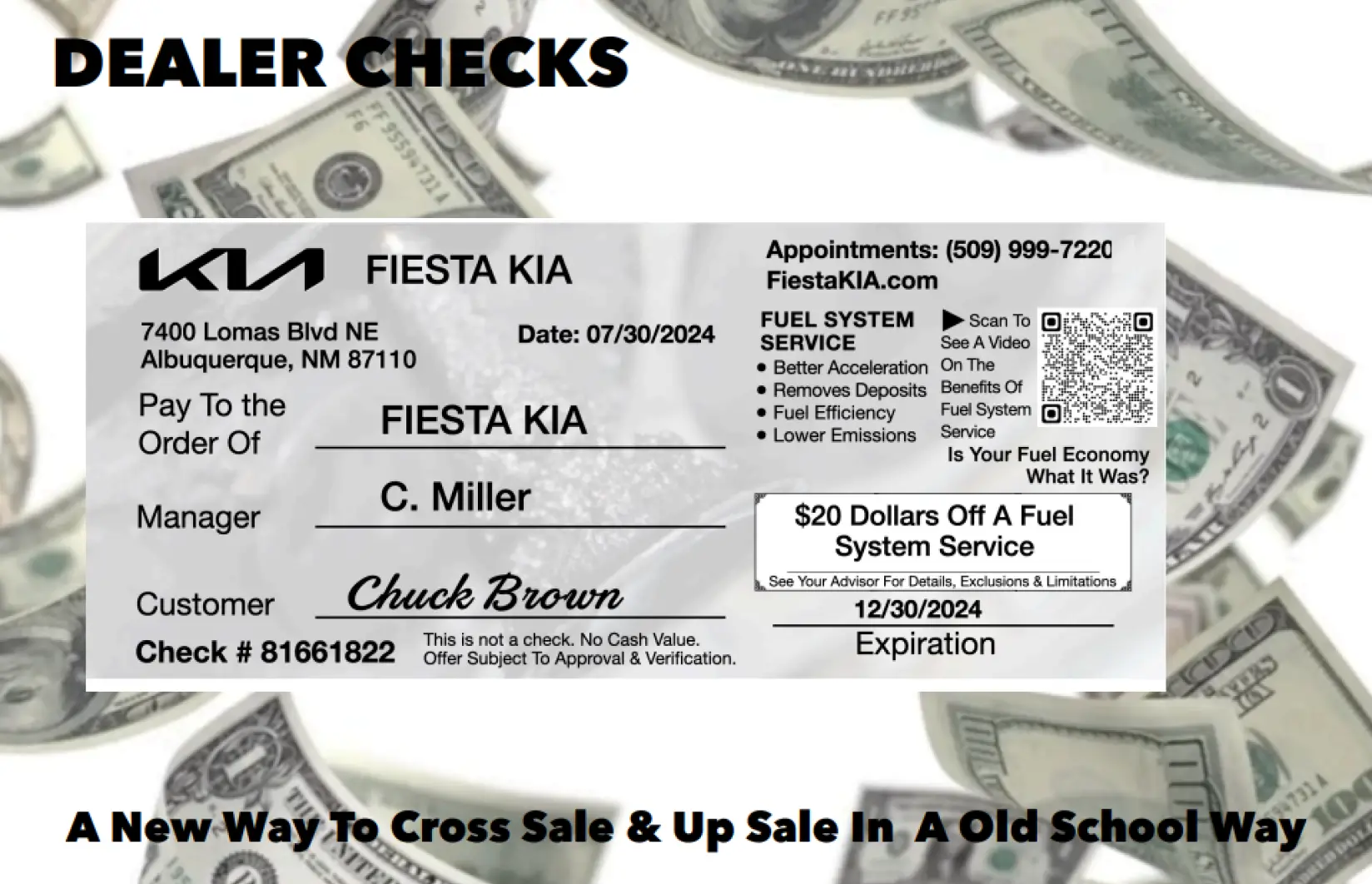 Dealer Checks. Onsite Cross Selling Checks. Print On Demand Promotional Checks & Share With Customers